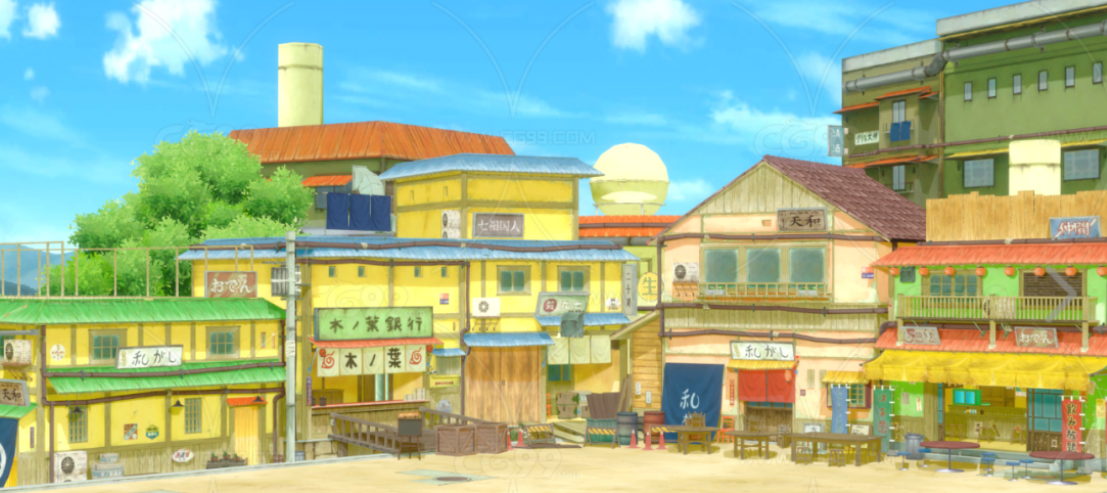 次時代PBR 游戲 火影忍者 木葉村 店鋪 建筑 房子 廣場 動畫 動漫 電影