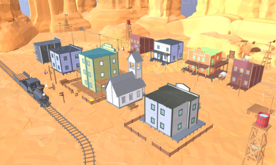 沙漠小鎮(zhèn) 西部火車 西部小鎮(zhèn) 沙漠 卡通火車 西部世界 沙漠 小鎮(zhèn) 卡通城市 采礦
